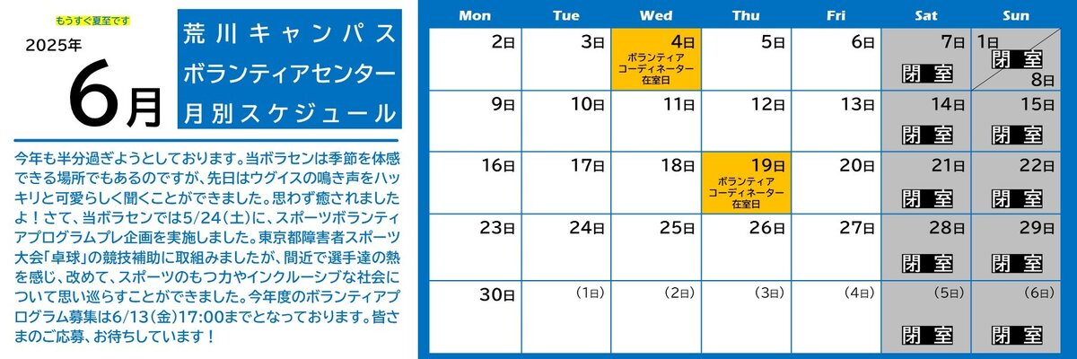 荒川キャンパス ボラセン「2025年12月」スケジュール