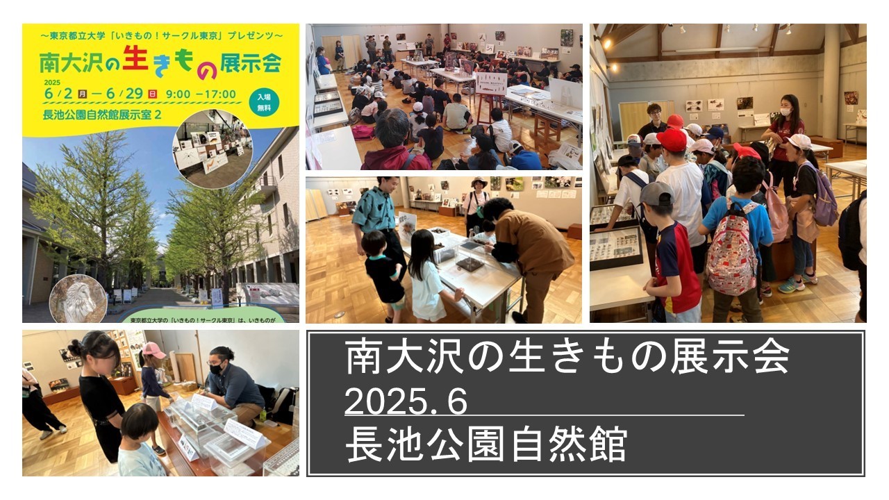 今年の活動の中では長池公園自然館で行った「南大沢の生きもの展示会」です。この展示会は、地域の小学校である別所小学校や秋葉台小学校の皆さんが校外学習の一環として団体で見に来てくれました。無人の展示であったためあいにくその場にたち会うことはできませんでしたが、自分たちの活動が、学校教育という公的な学びの場で貢献できたこと、そして地域の子どもたちの知的好奇心を刺激する一助となれたことに、これ以上ない喜びと誇りを感じた瞬間でした。