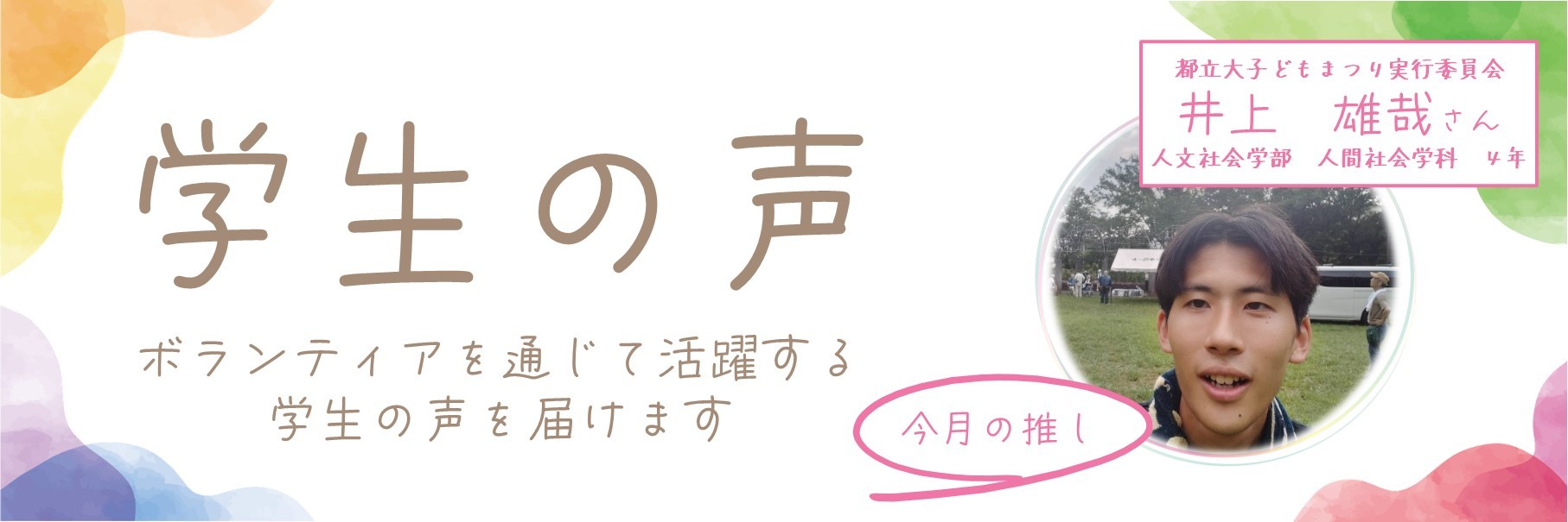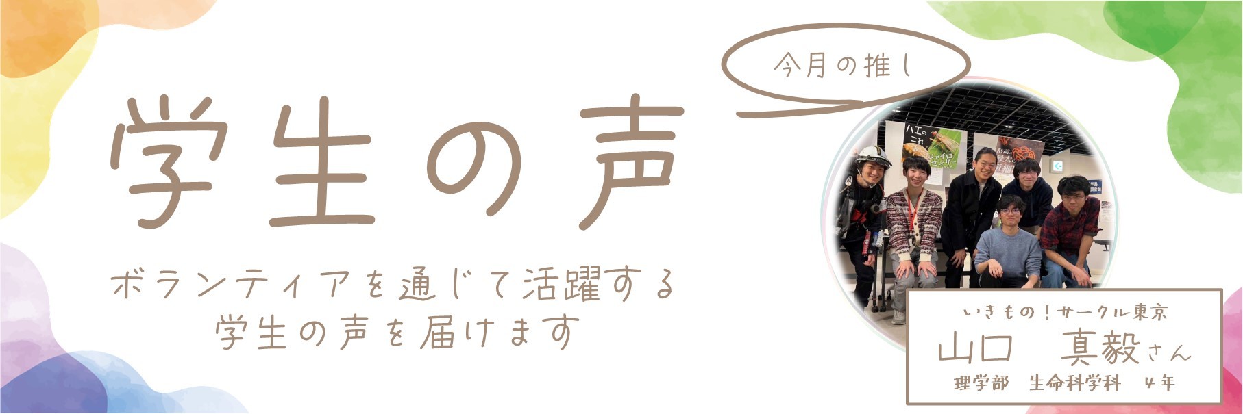 「学生の声」と題しまして、ボランティアを通じて活躍する学生の声を、インタビュー形式の記事でお届けしています。